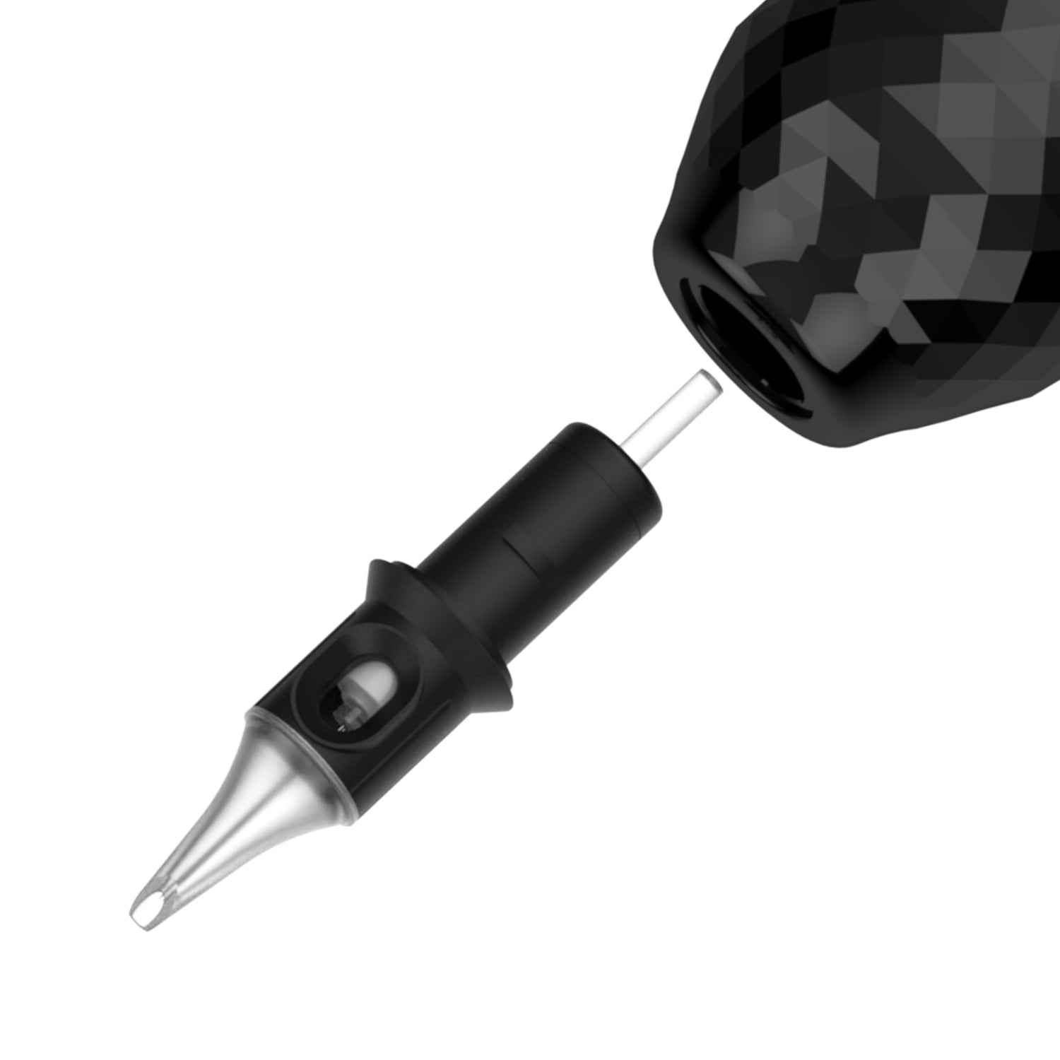 The body of this cordless pen-type machine is a sleek black with a diamond-faceted handle that expands to a maximum diameter of 37 mm. The 4 mm needle depth is easily adjusted by turning the Powerpack, and the depth and stroke of the needle can be adjusted manually with the included tool kit.