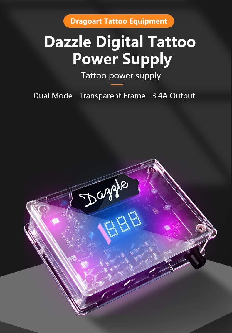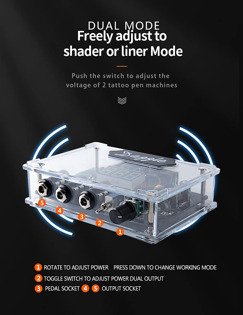 Висококачествено цветно-прозрачно захранване за машини, за татуировки с регулируемо напрежение.