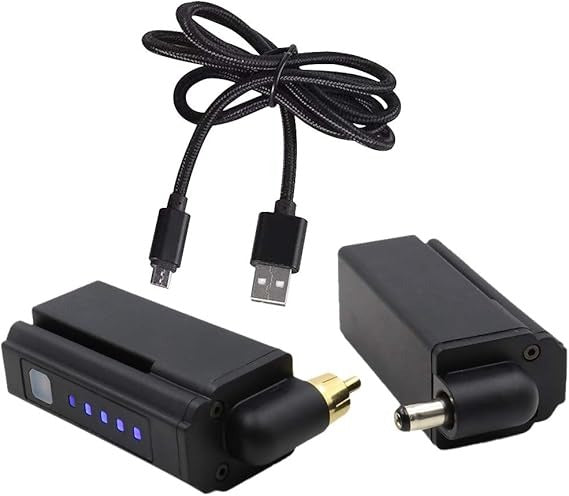 RCA или DC конектор спрямо вашето устроиство (свързва се към всяка машина за татуиране, писалка или ротационна с подходяща букса)
