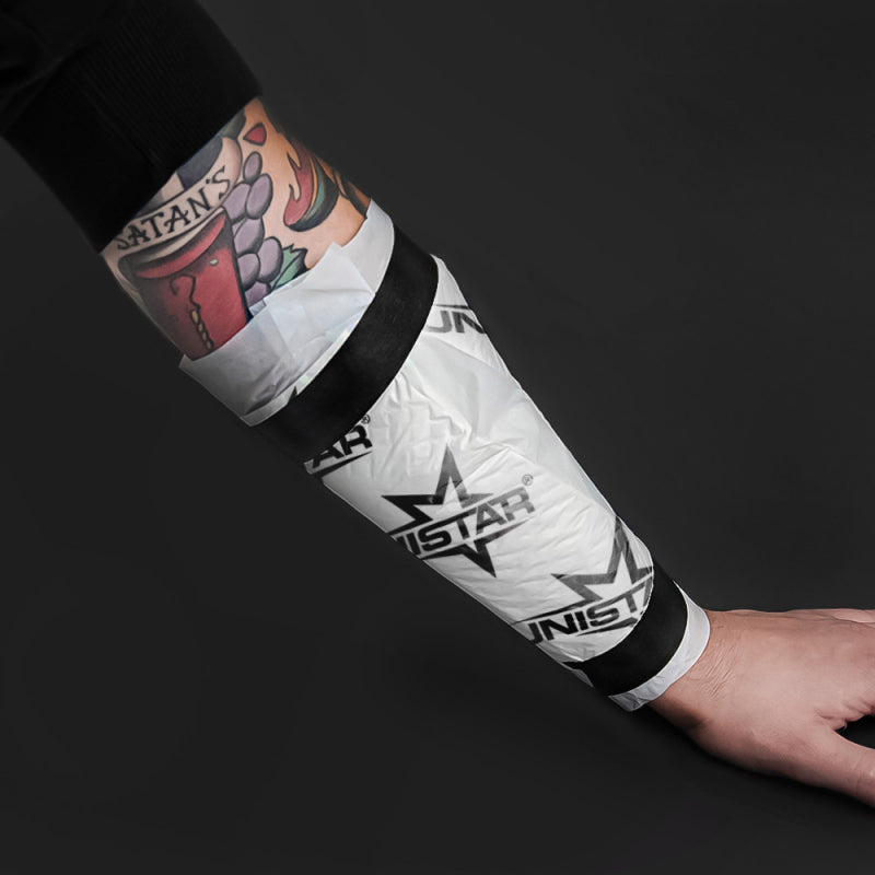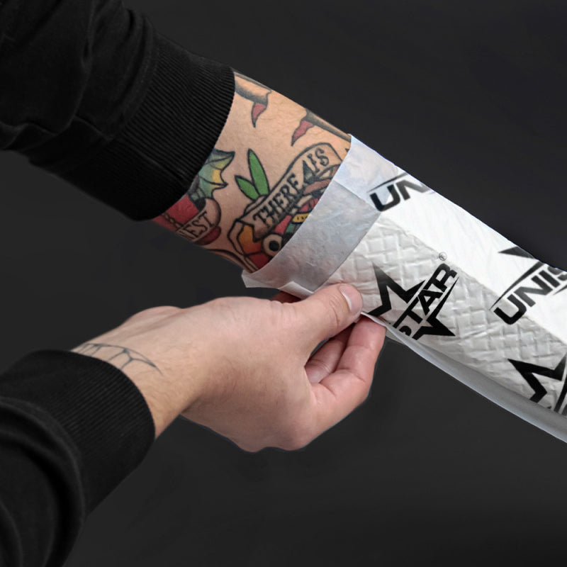 С три слоя, Skin Care Soaker Pads са изключително функционални и мега-абсорбиращи. Външният слой е водоустойчив и осигурява ефективна защита на татуировката от външната среда. Средният слой ефективно абсорбира течностите. Докато мекият и дишащ вътрешен слой гарантира комфорт и хигиена за кожата, раздразнена от процеса на татуиране. С това решение можете да сте сигурни, че ще осигурите на клиентите си най-високо качество на грижа след татуиране.